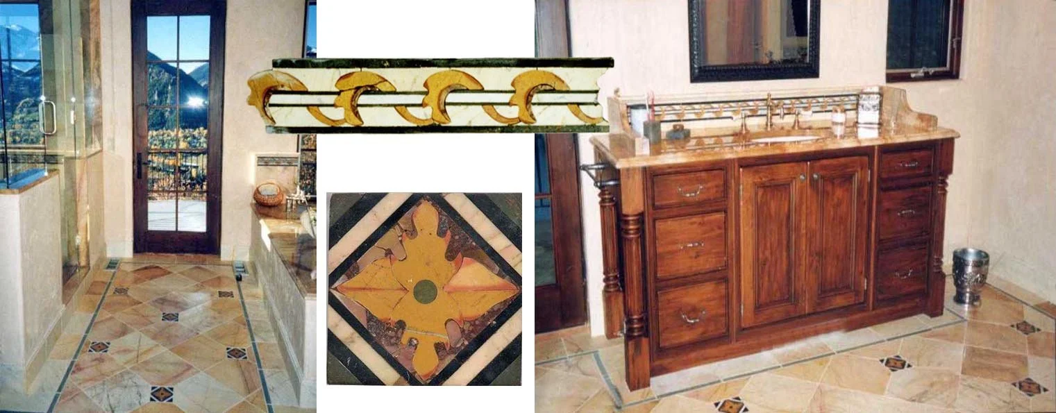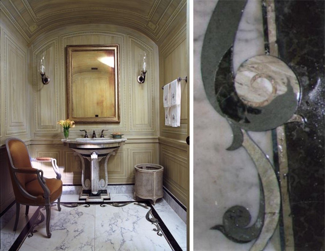 Inlaid borders FOR FLOORS - provide a sophisticated touch to floors, enhancing their aesthetic appeal and creating a visually striking look. Upgrade your living space with these exquisite inlaid borders that showcase exquisite craftsmanship and attention to detail. ALSO IN THIS installation is our Bianco avorio marble floor.